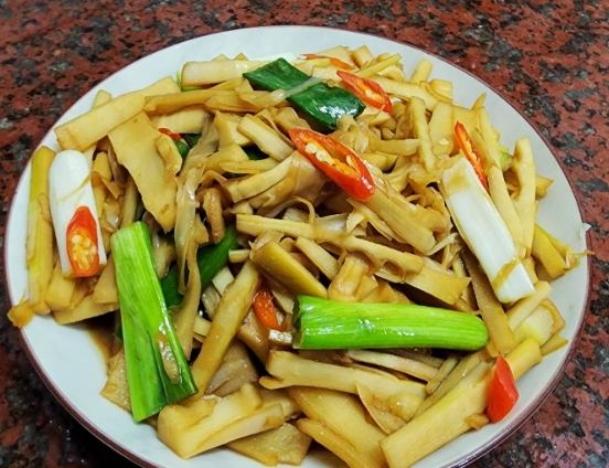 - 劍筍中段切斜片 + 適當汆燙 + 酸辣快炒: 劍筍本身質地緊實,斜切增加表面積,搭配醬汁快炒,脆中帶點韌勁,很過癮。